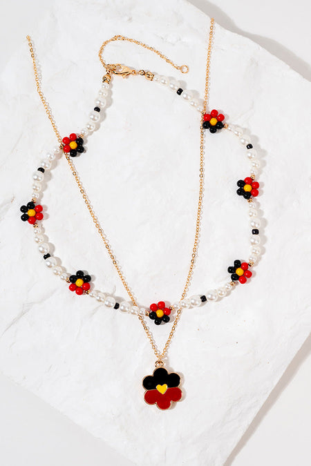 1 x "Raise The Flag" Aboriginal Flag Flower Pearl Beaded Necklace