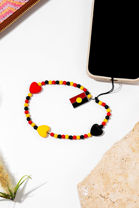 1 x "Raise The Flag" Aboriginal Flag Beaded Phone Charm