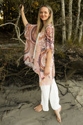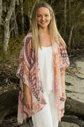 Made from light, airy chiffon, these shawls drape beautifully, creating a soft and graceful silhouette without adding weight or bulk. The fabric catches the light as you move, enhancing the vibrant colours of the artwork and making it the perfect statement piece for any occasion.