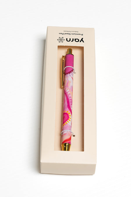 Each black ink pen features a gorgeous piece of artwork from talented First Nations artists around Australia. These premium pens come gift boxed and make wonderful presents.