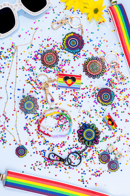 “This collection is a vibrant and unapologetic celebration of Pride - a time to honour the strength, visibility, and joy of being both Aboriginal and LGBTQIA+. It shines a light on the powerful intersection of culture, identity, and love, showcasing the beauty and resilience that exists within our communities. Pride is more than just a moment - it's a movement, a reflection of our history, our survival, and our right to take up space boldly and authentically. Through this collection, we hope people feel seen, celebrated, and empowered to embrace every part of who they are with pride and purpose.” - Bindi Bindi Art