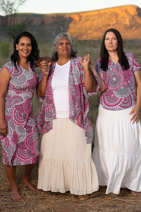 Yarn is proud to partner with the National Breast Cancer Foundation (NBCF) and Bunuba and Gija artist Eulalia Martin to release our limited-edition collection ‘Tribe of Women’. For each product sold in this collection, Yarn will donate $2 to the NBCF to support world-class breast cancer research.