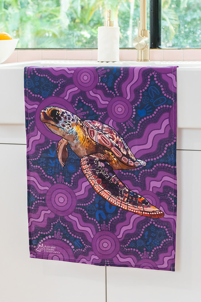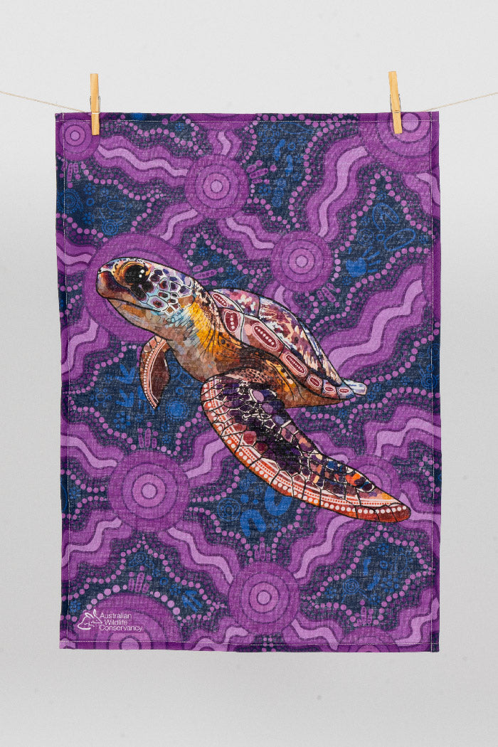 Sea Turtle 'Australian Wildlife Conservancy' Linen Blend Tea Towel