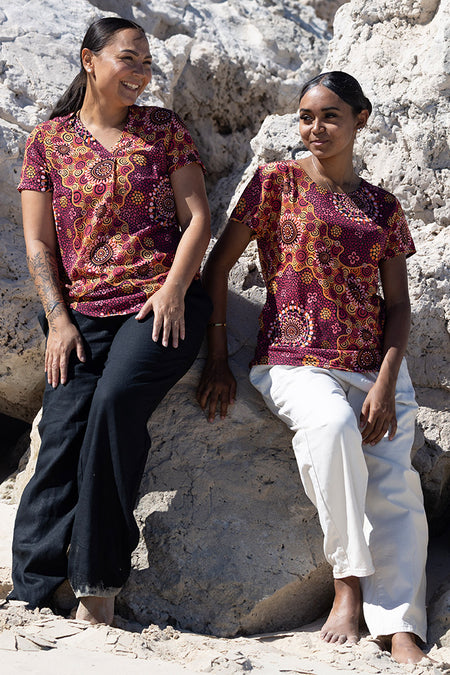 Amy Kilby is a proud Wiradjuri woman from the Riverina NSW. She has always found joy in art, particularly painting and drawing but since found a deep passion in exploring digital art in Indigenous styles. Her impressive use of palettes creates striking artworks in her new polo and clothing collection, inspired by and dedicated to her Miyagan (family). From birth families to chosen families, the people closest to us support us, keep us strong, and lift us up through their love, wisdom, and care.