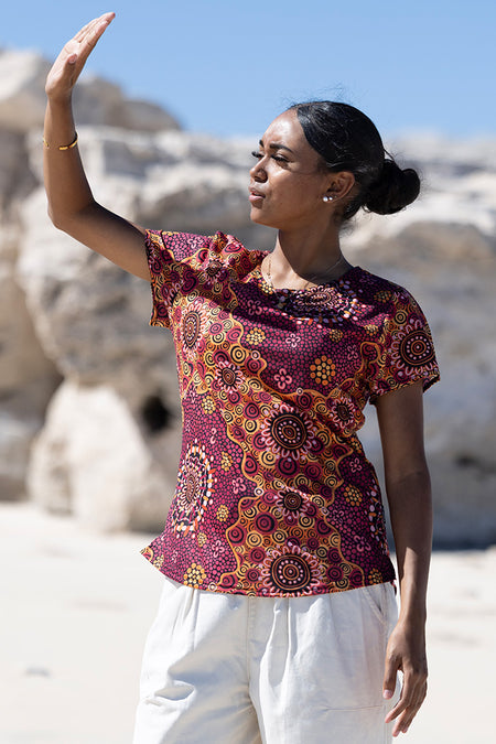 We collaborate with a large community of First Nations artists from across Australia, each bringing their own unique and authentic artistic style. The foundation of partnerships is respect, empowerment, and celebration, with royalties paid to artists on every purchase – supporting long-term career growth and creativity. Discover and learn about artists here.